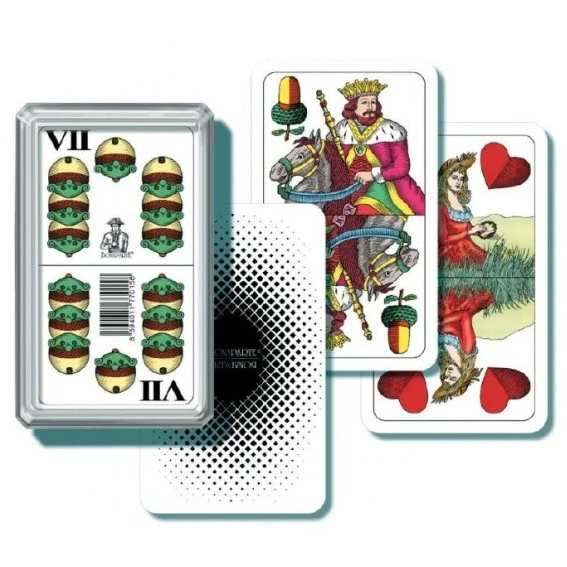 Klasická karetní hra mariáš. 32 listů, dvojhohlavé. Baleno v plastové krabičce 6,5 x 10,5 x 2cm.