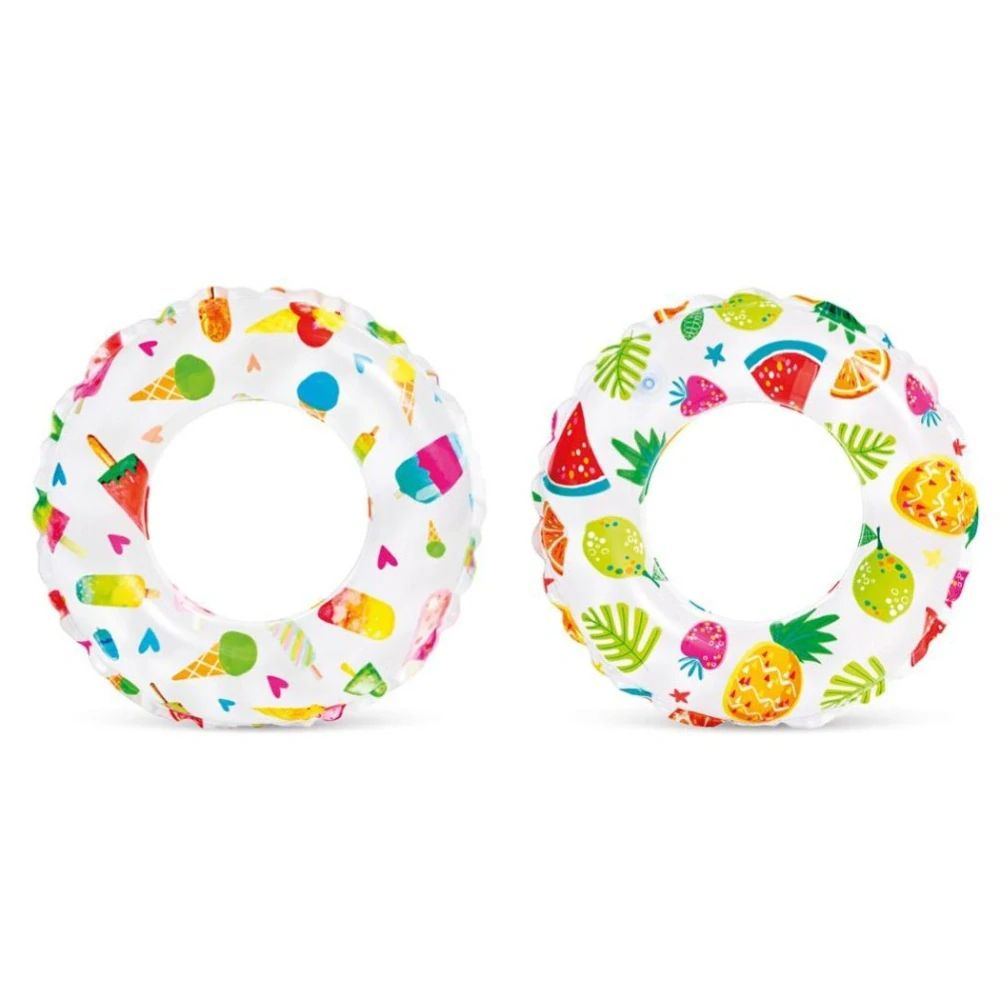 Nafukovací kruh s motivem zmrzliny /ananasů /ovoce poslouží dětem jako opora při plavání a je skvělým pomocníkem při prvním seznamování s vodou. Vyrobeno z kvalitního vinylu (0,18mm). Průměr 51 cm.