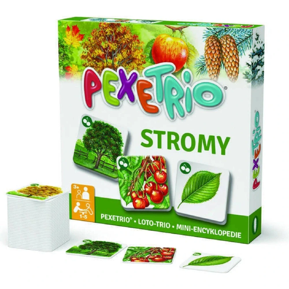 Pexetrio Stromy je zábavná hra inspirovaná pexesem, která děti zároveň i vzdělává. Děti se naučí poznávat různé stromy, jejich listy a plody podle hesla „škola hrou“. Kromě toho, že si děti osvojí znalost zábavným způsobem, hra také napomáhá rozvíjet jejich logické myšlení a trénovat paměť hledáním trojice kartiček.