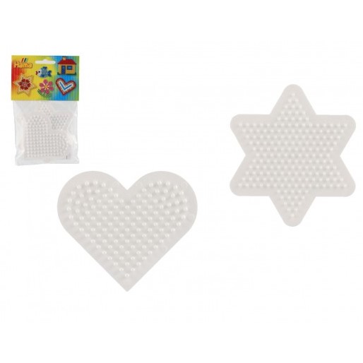 Pomůcka pro vytváření obrázků ze zažehlovacích korálků. Sada obsahuje podložku ve tvaru hvězdy a srdíčka.