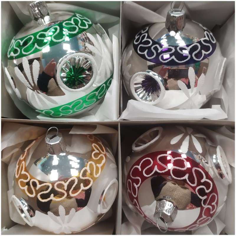 Průměr ozdoby je 6 cm. Koule jsou v těchto barvách: červená, žlutá, zelená, růžová, fialová. Chcete-li konkrétní barvu, prosím napište do poznámky k objednávce (dostupnost konkrétní barvy ale bohužel nedokážeme zaručit). Pozor - předmětem prodeje je 1 kus (nikoli 4).