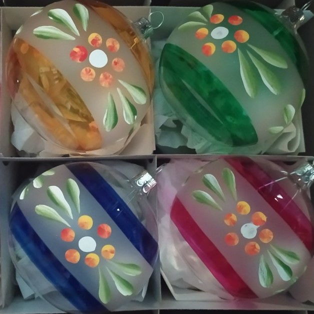 Tradiční skleněná ozdoba vyráběná v opavském družstvu Slezská tvorba, jehož tradice se datuje do r. 1951. Každý kus je vyráběn a malován ručně.