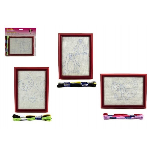 Kreativní sada na vyšívání pro všechny šikovné děti. Sada obsahuje plastový rámeček s napnutým plátýnkem s předtištěným obrázkem a tři barevné příze. Obrázky se mohou lišit od vyobrazení, dodává se v různých barevných kombinacích a v několika motivech obrázku, do objednávky vybíráme náhodný kus.