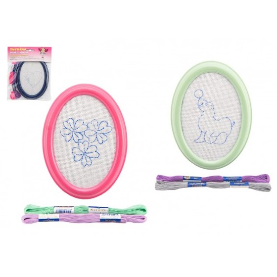 Kreativní sada na vyšívání pro všechny šikovné děti. Sada obsahuje plastový rámeček s napnutým plátýnkem s předtištěným obrázkem, dva další obrázky na vyšití a bavlnky. Obrázky se mohou lišit od vyobrazení, dodává se v různých barevných kombinacích a v několika motivech obrázku, do objednávky vybíráme náhodný kus.